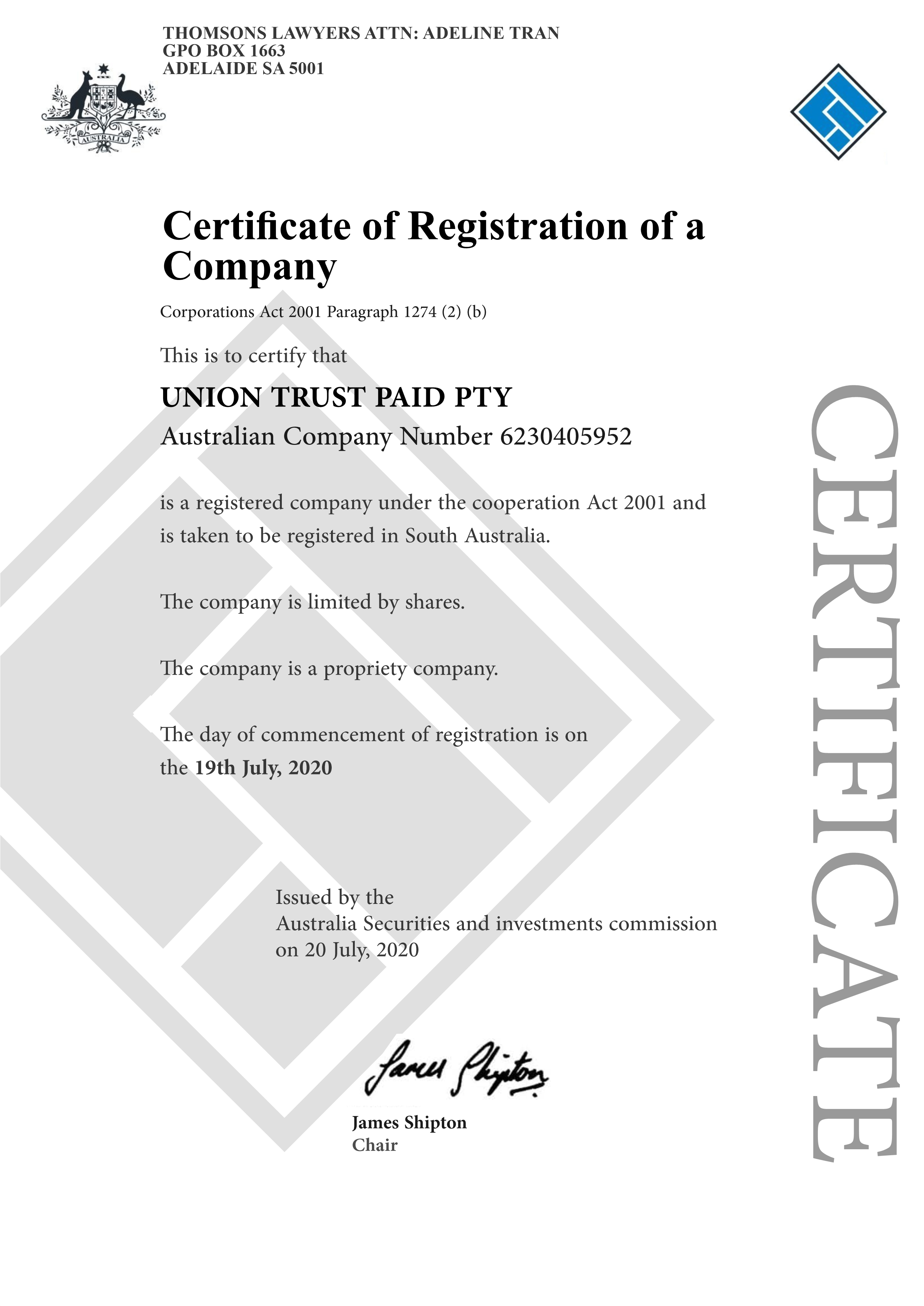 Union Trust Paid is an officially registered company in the United States Proprietary Company, Limited By Shares. The company has registration number is 623405952 and it is located at LAUNCESTON 7250 Tasmania Australia. We are a group of passionate, independent thinkers who never stop exploring new ways to improve trading for the self-directed investor. Union Trust Paid is an award-winning broker focused on online foreign exchange and Contract for Difference (CFD) trading services. With our CFD products, you can do leveraged trading in global financial markets. Our mobile app and web-based trading platforms offer customers a superior experience, with competitive transaction costs, fast transaction execution and excellent customer service. With Union Trust Paid, you can freely choose assets amongst forex, indices, commodities, shares and cryptocurrencies etc. and grasp trading opportunities under price fluctuations in the market. Union Trust Paid is authorised and regulated by the United States Securities and Investments Commission (ASIC) and holds an United States Financial Services Licence . All transactions and operations comply with the applicable United States regulations..